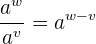 Da mesma forma, sabemos que ao dividir dois termos com a mesma base, o resultado é a base elevada à diferença dos expoentes (o expoente do numerador menos o expoente do denominador). Em outras palavras, dadas as expressões com a mesma base