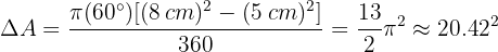 A área do trapézio circular formado (ver figura) pode ser calculada da seguinte forma: