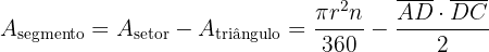 Finalmente, substituindo os dados numéricos na expressão anterior, a área de 1 segmento circular é: