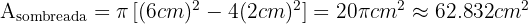Por fim, substituindo os valores numéricos, obtemos que a área da parte sombreada é: