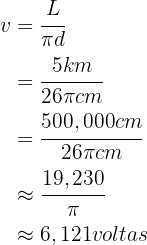 Uma bicicleta com rodas de 26 cm de diâmetro percorreu 5 km. Quantas voltas completas cada roda deu durante esse percurso?