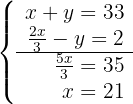 A soma de dois números é 33 e a terceira parte do maior menos a metade do menor é 1, quais são esses números?