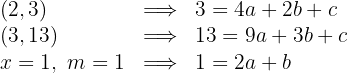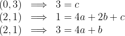 2 Substituindo os dois pontos por onde passa o gráfico na equação dada e a inclinação da reta tangente que é , obtemos o seguinte sistema de três equações