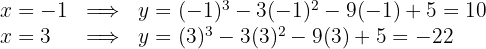 2 Como a inclinação é , igualamos à derivada e encontramos os valores dos pontos de tangência com inclinação três