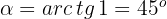 2 A inclinação no ponto de origem é . Portanto, o ângulo formado entre a reta tangente e o eixo das abscissas é: