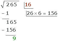 2 Calculamos a raiz quadrada inteira ou exata do primeiro grupo de cifras pela esquerda, neste caso o (